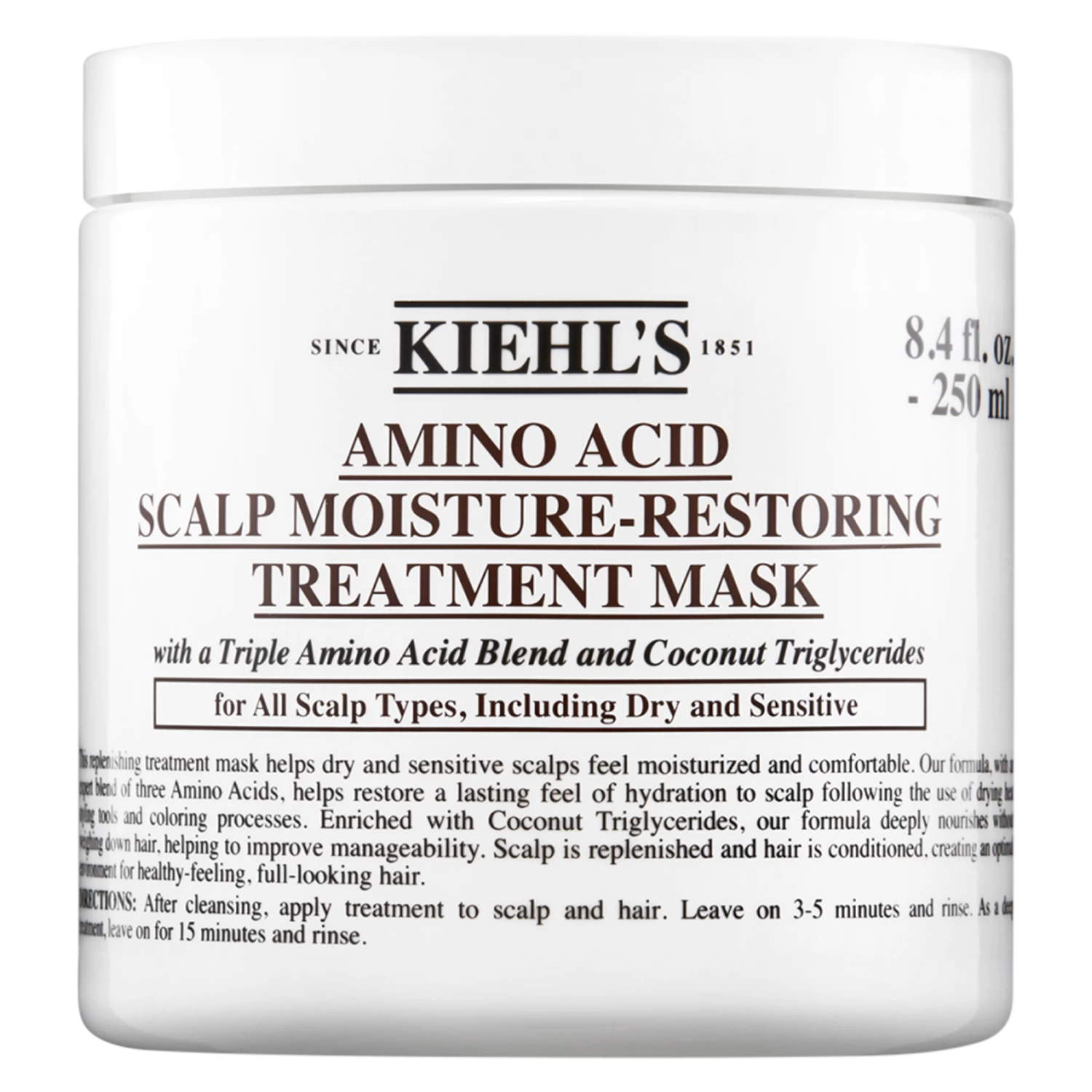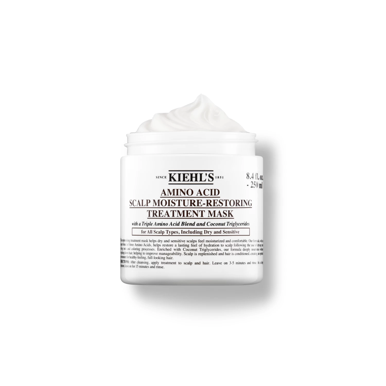 Die hydratisierende Amino Acid Scalp-Mask bringt die Hautbarriere der Kopfhaut wieder ins Gleichgewicht und das Haar wirkt voller und gesünder. Die pflegenden Effekte sind bereits nach der ersten Anwendung spür- und sichtbar. Mithilfe der Inhaltsstoffe wird die Kopfhaut von Spannungen, Rötungen sowie von Schuppenbildung befreit und erhält zugleich einen intensiven Schutz vor schädlichen Umwelteinflüssen wie Hitze, hartem Wasser und Sonnenstrahlen. In der Amino Acid Scalp-Mask von Kiehl’s sind ein Aminosäure-Komplex-3 sowie Kokosnuss-Triglyzeride enthalten.