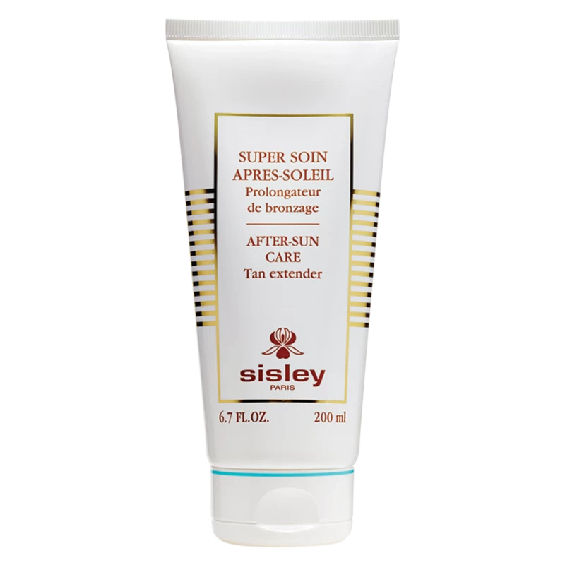 Super Soin Après-Soleil für anhaltende Bräune ist eine Körperpflege, die eigens entwickelt wurde, um die Haut nach dem Sonnenbaden sofort zu beruhigen, mit Feuchtigkeit zu versorgen und zu erfrischen. Die Pflegeformel mit einem hohen Anteil an hautberuhigenden Aktivstoffen wie Andirobaöl und Alpha-Bisabolol lindert das Hitzegefühl. Die feuchtigkeitsspendenden und regenerierenden Eigenschaften der Extrakte aus Karité-Butter, Steviablättern und pflanzlichem Glycerin pflegen und beruhigen die Haut und schenken ihr Wohlbefinden. Durch einen leichten Anteil an Selbstbräunern (DHA und Erythrulose) wird die natürliche Sonnenbräune verstärkt. Die flüssige, nicht fettende Creme-Textur zieht rasch ein.