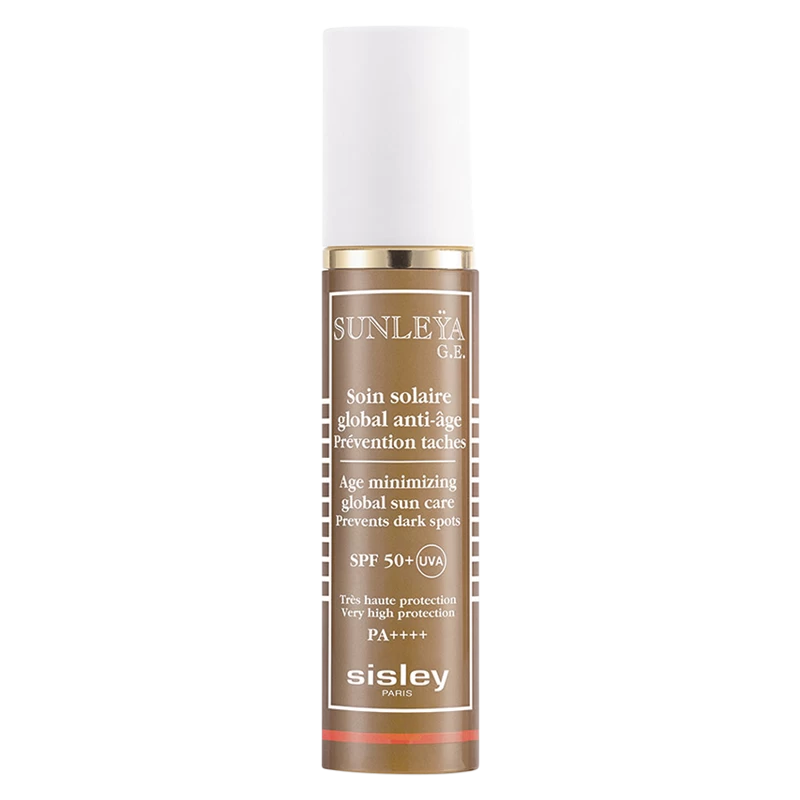 Sunleÿa G.E. Soin Solaire Global Anti-Âge SPF 50+ wirkt wie ein regelrechter Sonnenschirm, der die Haut vor Alterserscheinungen wie Falten, Pigmentflecken, Feuchtigkeitsmangel und nachlassender Festigkeit bewahrt. Außerdem verleiht die Pflege eine strahlende, langanhaltende Bräune.